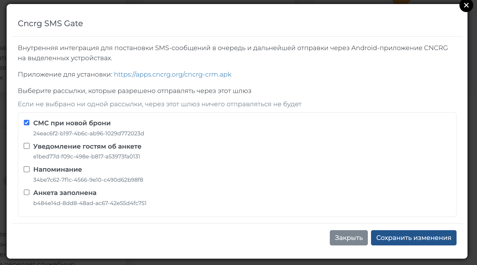 Модуль отправки SMS позволяет настроить интеграцию с сервисами SMS-рассылок для отправки кодов доступа, уведомлений о бронировании и другой полезной информации вашим гостям.