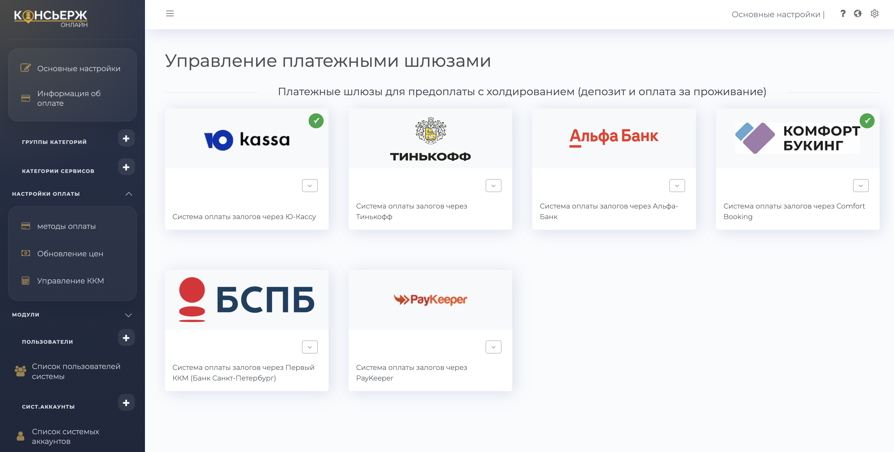 С этого момента все платёжные ссылки, которые система генерирует для гостей этого объекта, будут проходить через выбранный шлюз.