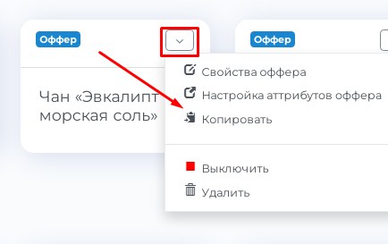 По завершению настройки Базового оффера, по необходимости, можно скопировать эту услугу со всеми настройками.