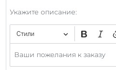 В описании можно пользоваться разными возможностями: выбирать стиль, шрифт жирный или курсив, список маркированный или нумерованный и т.д