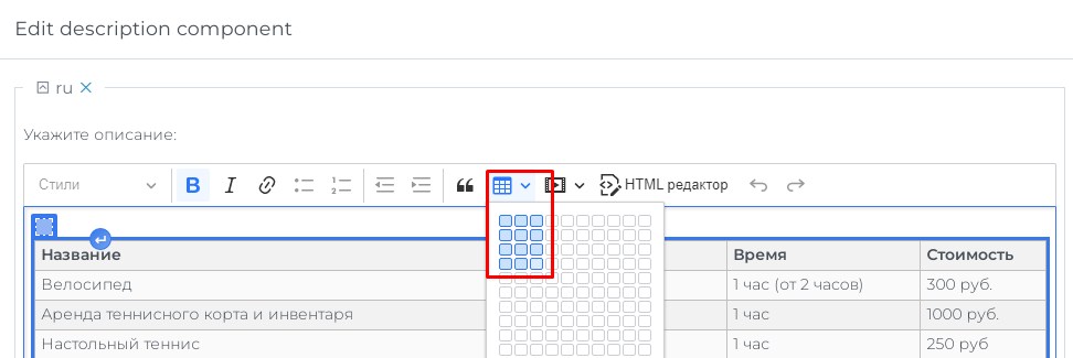 Для информационной таблицы через конструктор сервиса - добавляем ещё раз описание